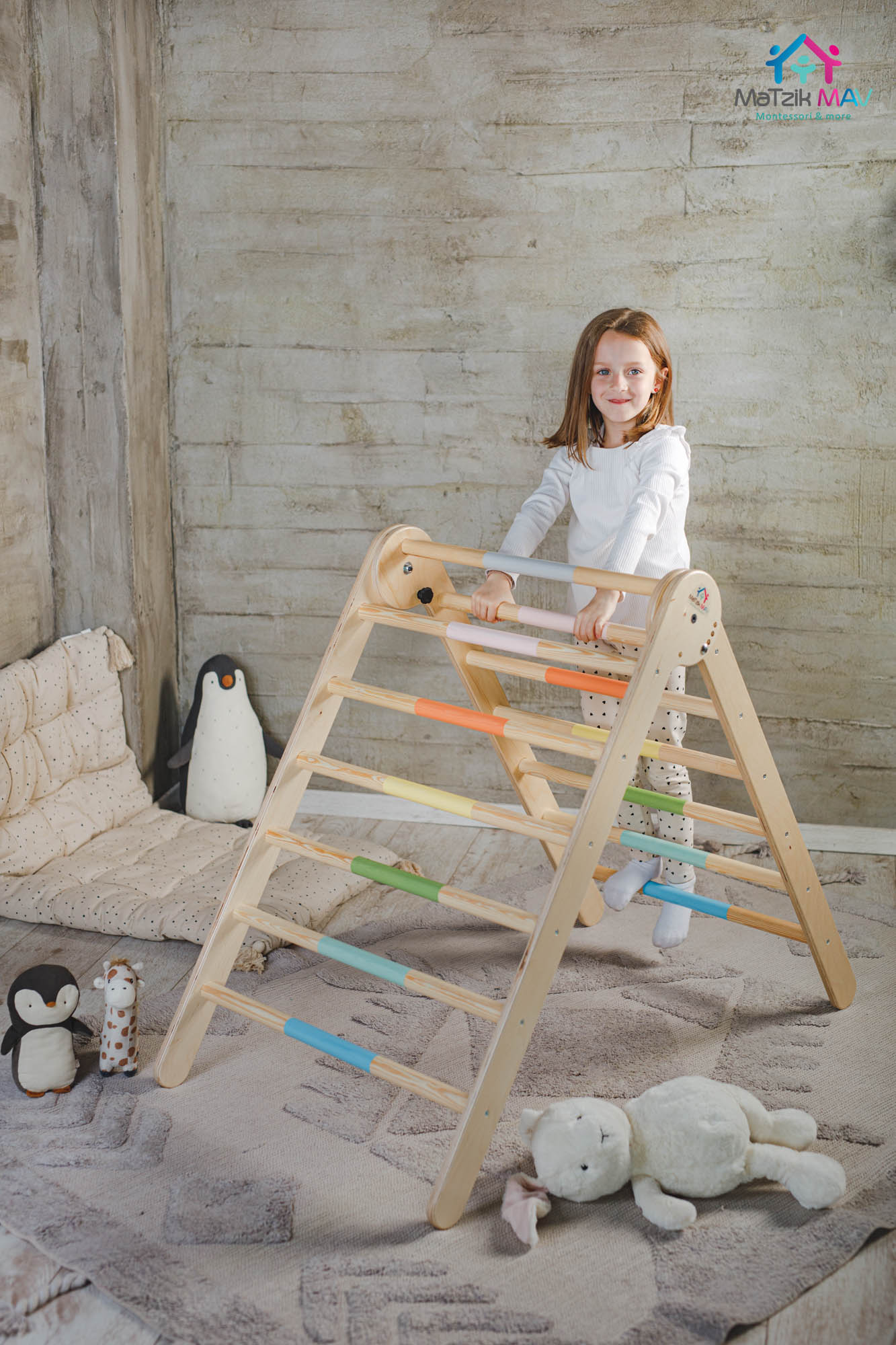 Το Τρίγωνο Αναρρίχησης είναι μία χειροποίητη, ξύλινη κατασκευή, σχεδιασμένη σύμφωνα με τις αρχές της παιδιάτρου Emmi Pikler. Επιτρέπει ελεύθερο εύρος κίνησης στο παιδί και παρέχει ένα ασφαλές περιβάλλον για να εμπνεύσει αυτοπεποίθηση και αυτονομία του σώματος. Ενισχύει τις κινητικές δυνατότητες, την ισορροπία και τη συγκέντρωση. Συμβάλει στην ενδυνάμωση και το συντονισμό μεταξύ των μελών του σώματος!